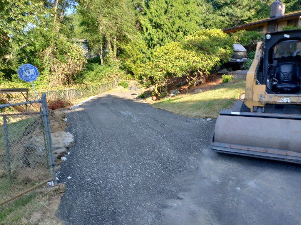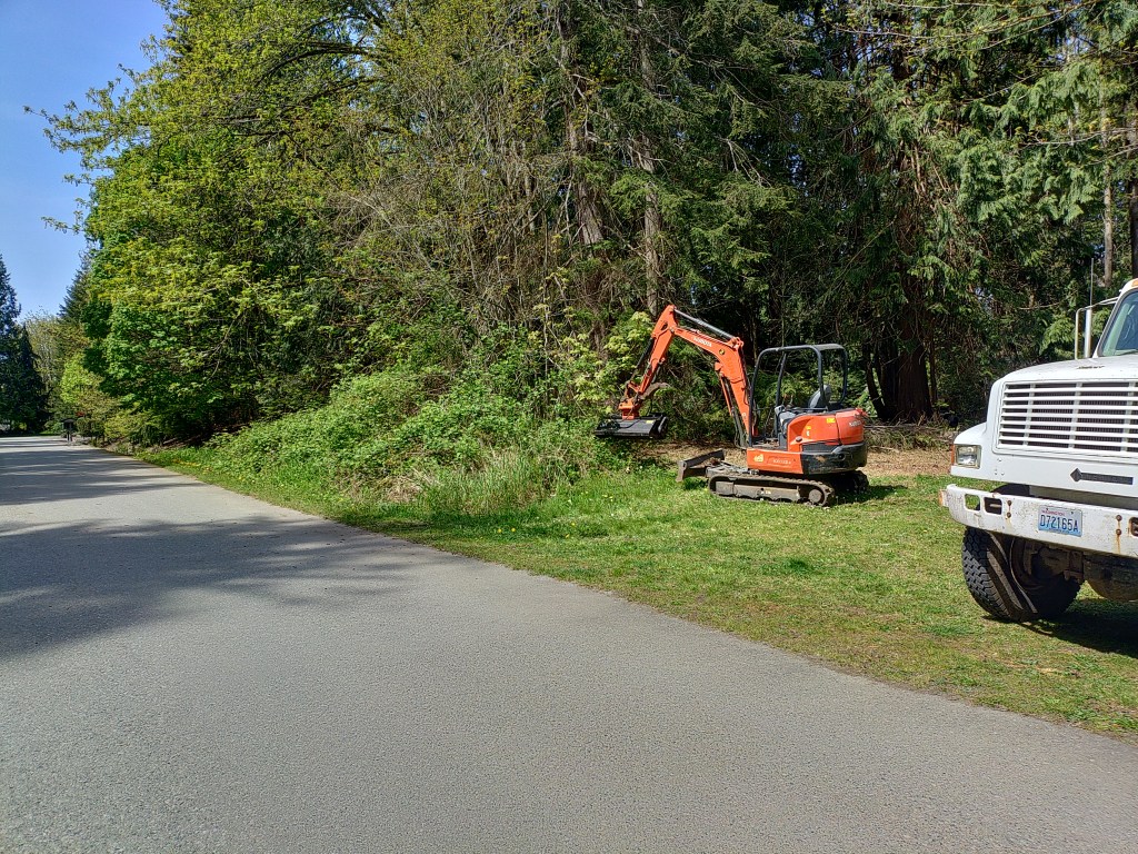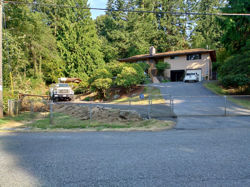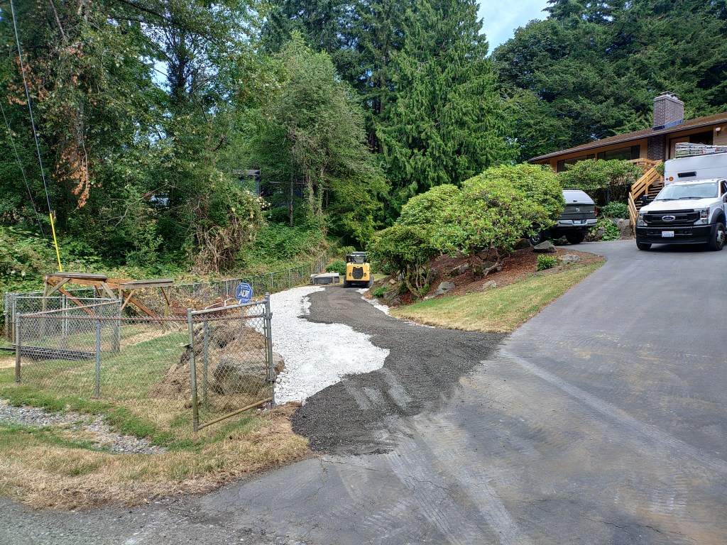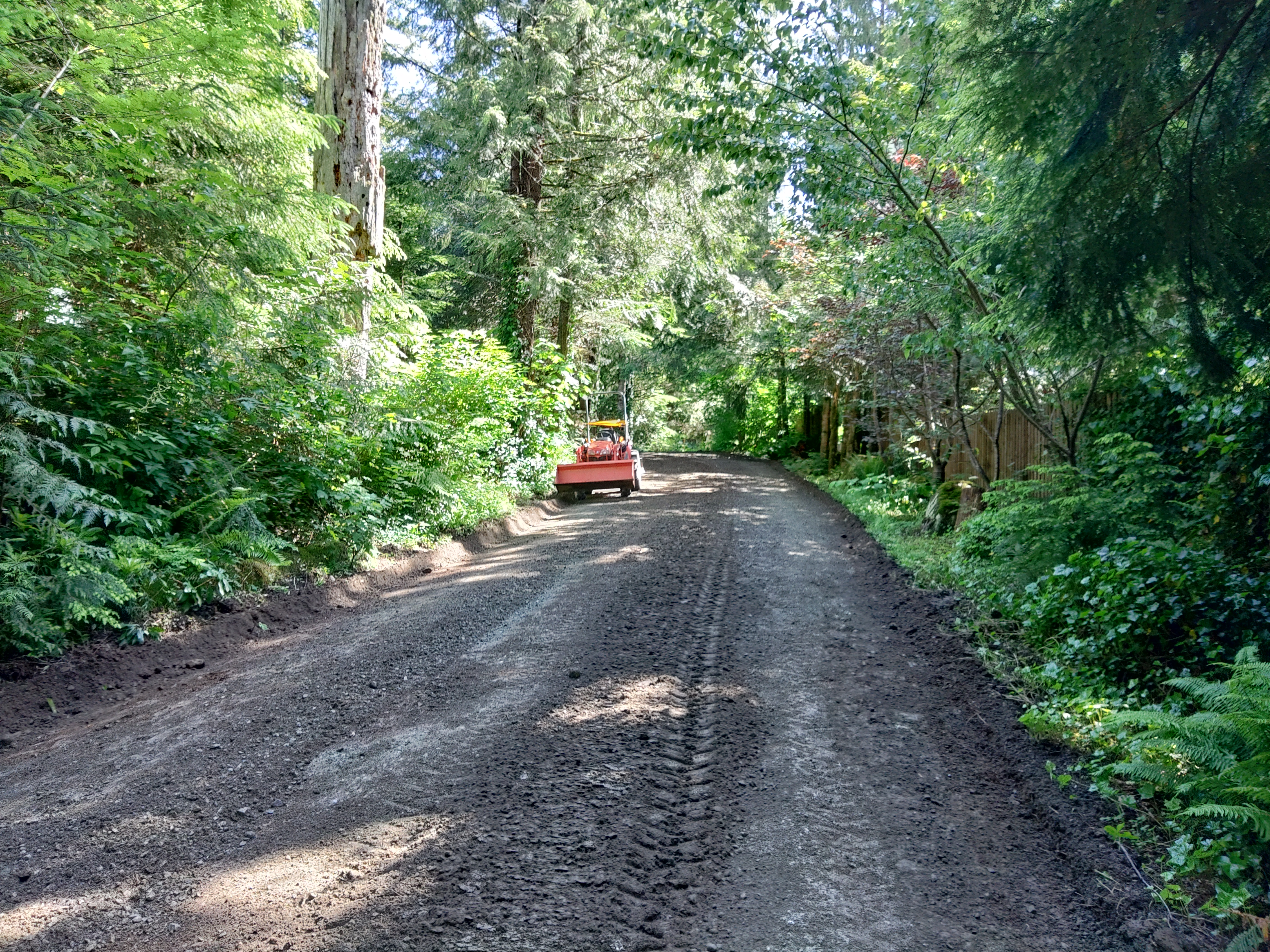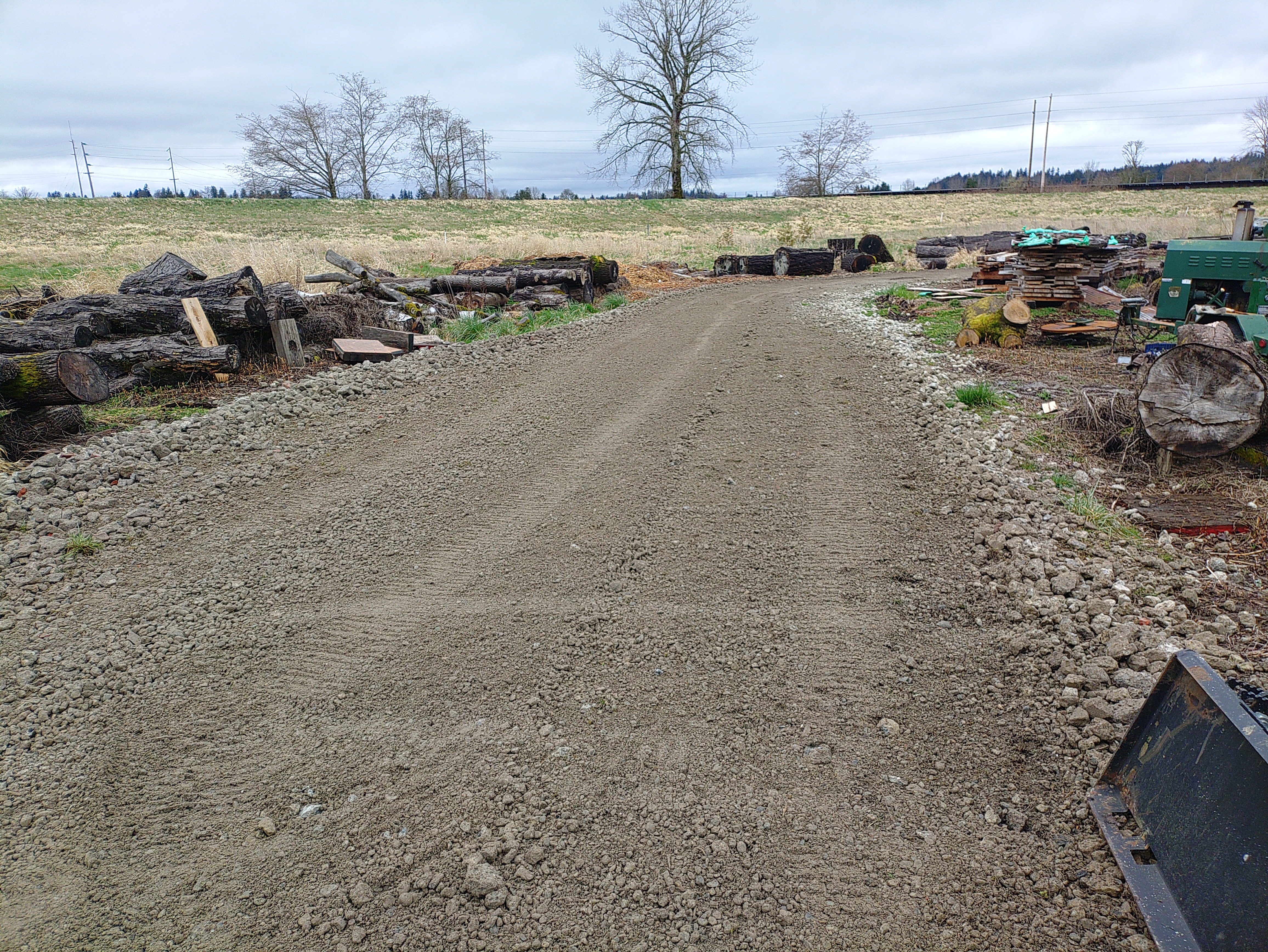 8-acre property development project which included, clearing brush, cutting down a patch of alder trees to improve the view, installing a circular driveway, conduit for underground power, cable, water, drainage, and finish grading after the home was built.