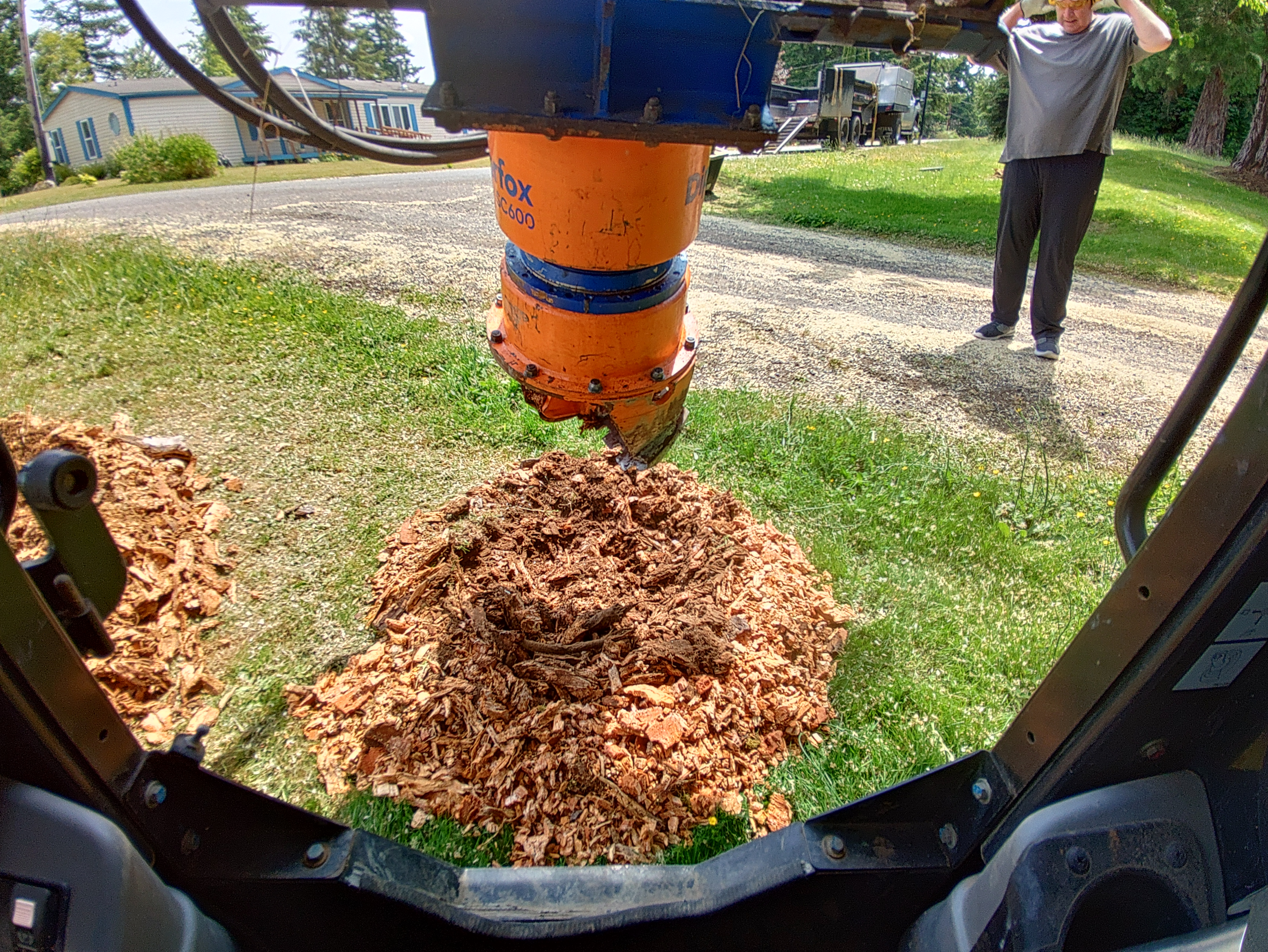 We have a several machines available to grind the largest stumps with speed and precision. our fastest and safest grinder is attached to a compact track loader and drills into stumps at low speed eliminating the flying debris that is produced by most conventional grinders. Our medium stump grinder is small enough to fit through a 36″ gate. Our smallest stump Grinder is powered by a 11-horsepower chainsaw engine weighs in at 80 pounds and can be carried by one man allowing us to remove stumps on hillsides or sensitive areas not accessible by any other machine